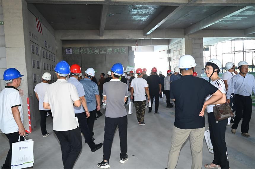 在質(zhì)量標(biāo)準(zhǔn)化觀摩區(qū),金融街項(xiàng)目重點(diǎn)展示了主體結(jié)構(gòu)實(shí)測實(shí)量、二次結(jié)構(gòu)砌筑及配管、內(nèi)墻抹灰、給排水管道安裝、水電安裝預(yù)埋、抗震支(吊)架安裝等標(biāo)準(zhǔn)化工藝樣板;樓梯封閉式支模、三段式止水螺桿、主體結(jié)構(gòu)方圓扣龍骨模板體系等應(yīng)用樣板;技術(shù)質(zhì)量管理可視化交底、原材料質(zhì)量管理一碼通、質(zhì)量亮點(diǎn)實(shí)施方案、質(zhì)量管理口袋書、三維碰撞檢測及二次深化等質(zhì)量管理措施。在安全標(biāo)準(zhǔn)化觀摩區(qū),重點(diǎn)展示了揚(yáng)塵治理智能化終端系統(tǒng)應(yīng)用、雙重預(yù)防體系的建設(shè)與運(yùn)行、安全生產(chǎn)治本攻堅三年行動落地執(zhí)行情況。觀摩人員進(jìn)行了認(rèn)真觀摩、拍照及提問,現(xiàn)場互動氣氛熱烈,起到了良好的觀摩效果。
